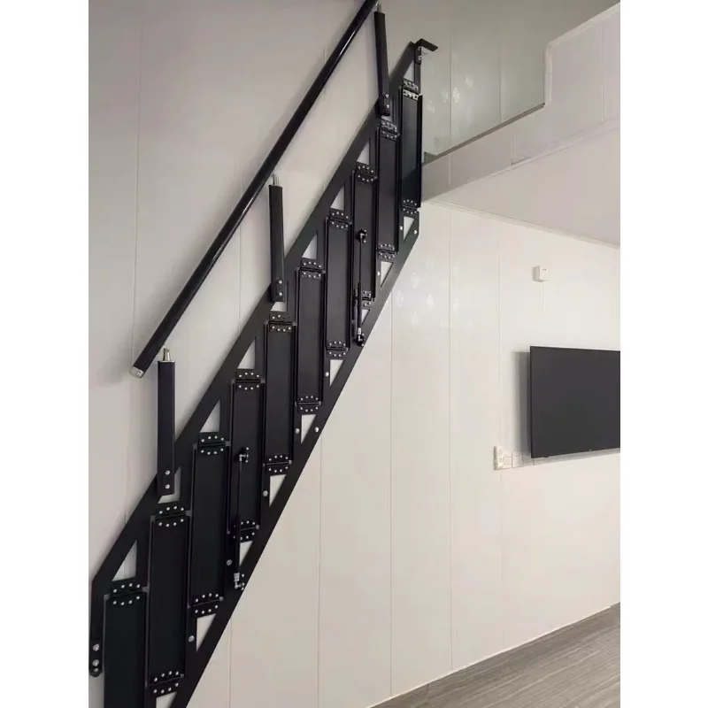 Modern Loft Duplex Indoor/Outdoor Retractable Glass Staircase with Wall-Mounted Glass Railing Second-Floor Home Side Ladder