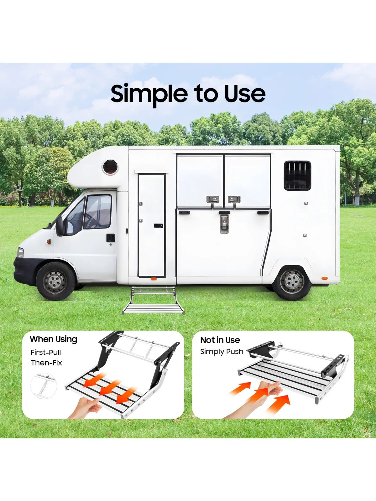 Manual RV Step Aluminum Alloy Step Wagon Step Camping Entry Step Foldable Design 21.25*17.91*5.9 in For RVs Travel Trailers