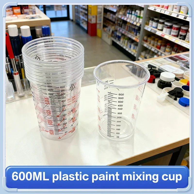10Pcs 600ml Disposable Clear Plastic Paint Mixing Cups Mixing Pot Paint Mixing Calibrated Cup Accurate Paint Liquids