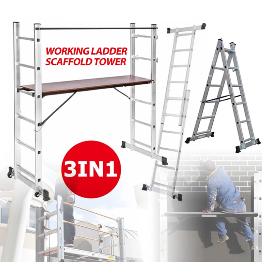 Heavy Duty 3 IN 1 Working Scaffold Scaffolding Tower Multi-purpose Aluminium Step Ladder Platform Indoor Outdoor
