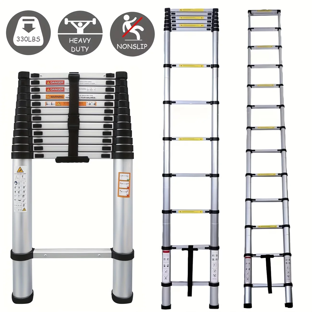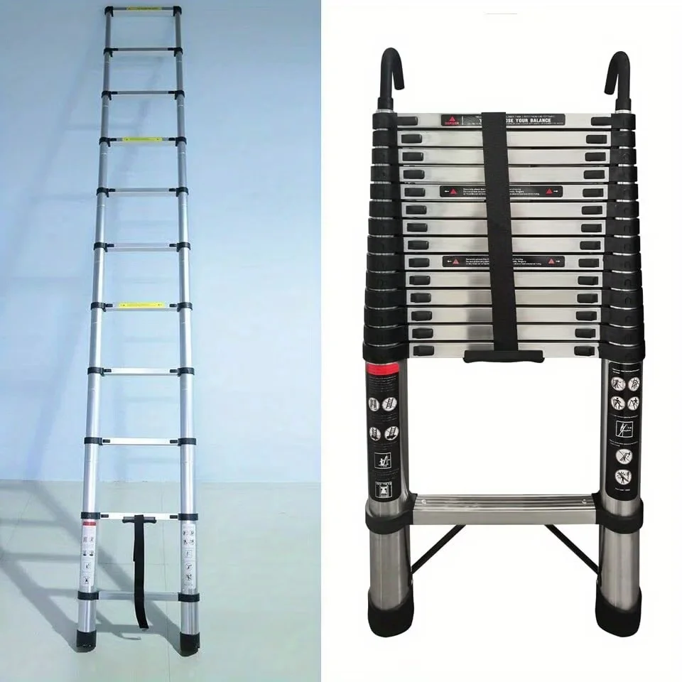 Telescopic Ladder 2.6M-6.3M Extension Ladder Stainless Steel Portable EN131 Standard With Detachable Hooks 150kg Load Capacity