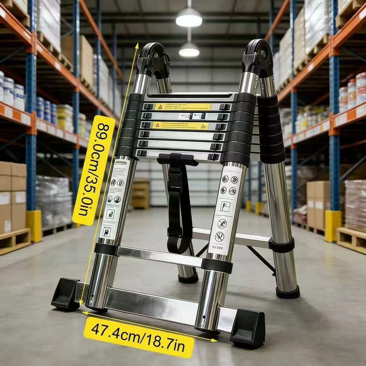 5m stainless steel telescopic ladder, folding telescopic ladder, height adjustable, suitable for outdoor and home use.