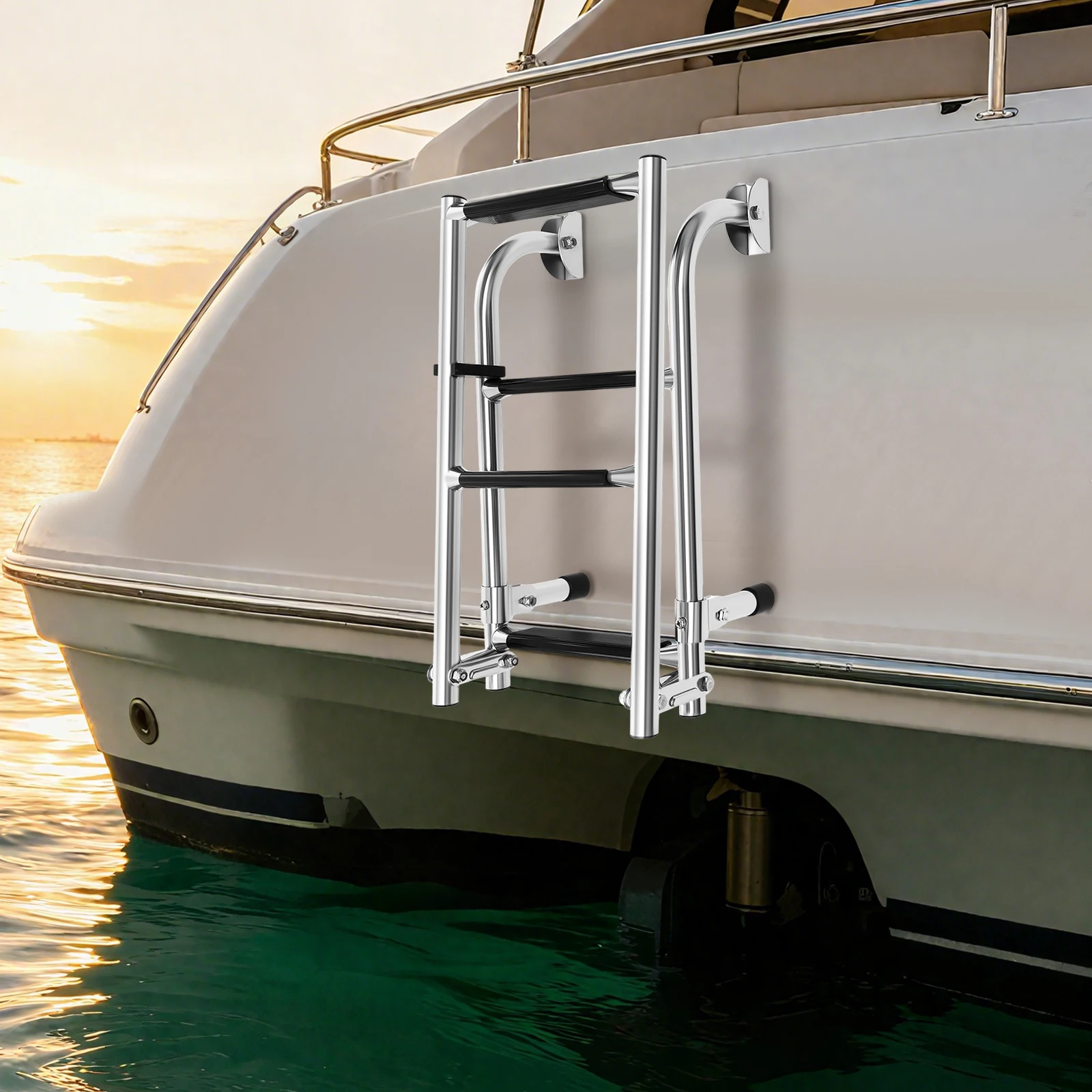 Leichte Klappbare Yachtleiter (2,71kg) Mit C-Klemme Und Vorbohrten Löchern, Direkte Montage Ohne Zusätzliche Montagearbeit