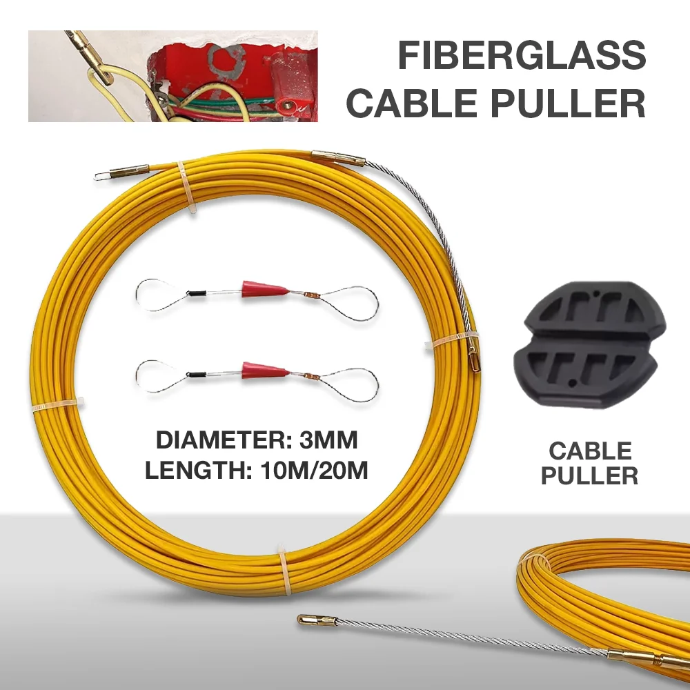 3mm Fiberglass Cable Puller 10/20m Duct Rodder Fish Tape Guide Device Electrician Wiring Tool Wiring Installation Auxiliary Tool