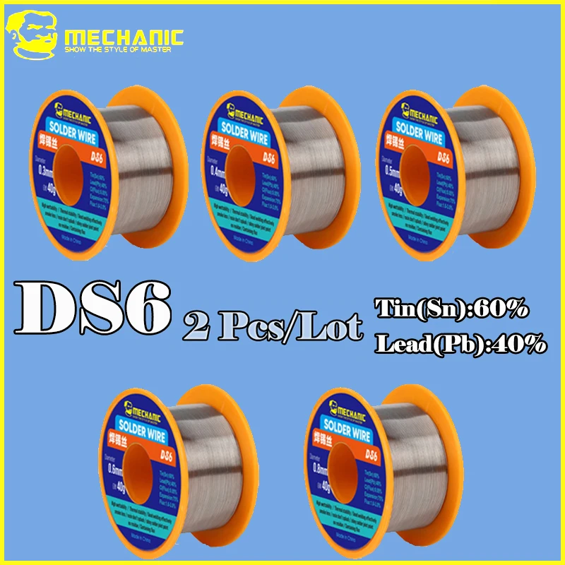 MECHANIC 2Pcs/Lot DS6 Sn60Pb40 High Purity Rosin Core Solder Wire Smooth Solder Joints for PCB Motherboard Repair Tools