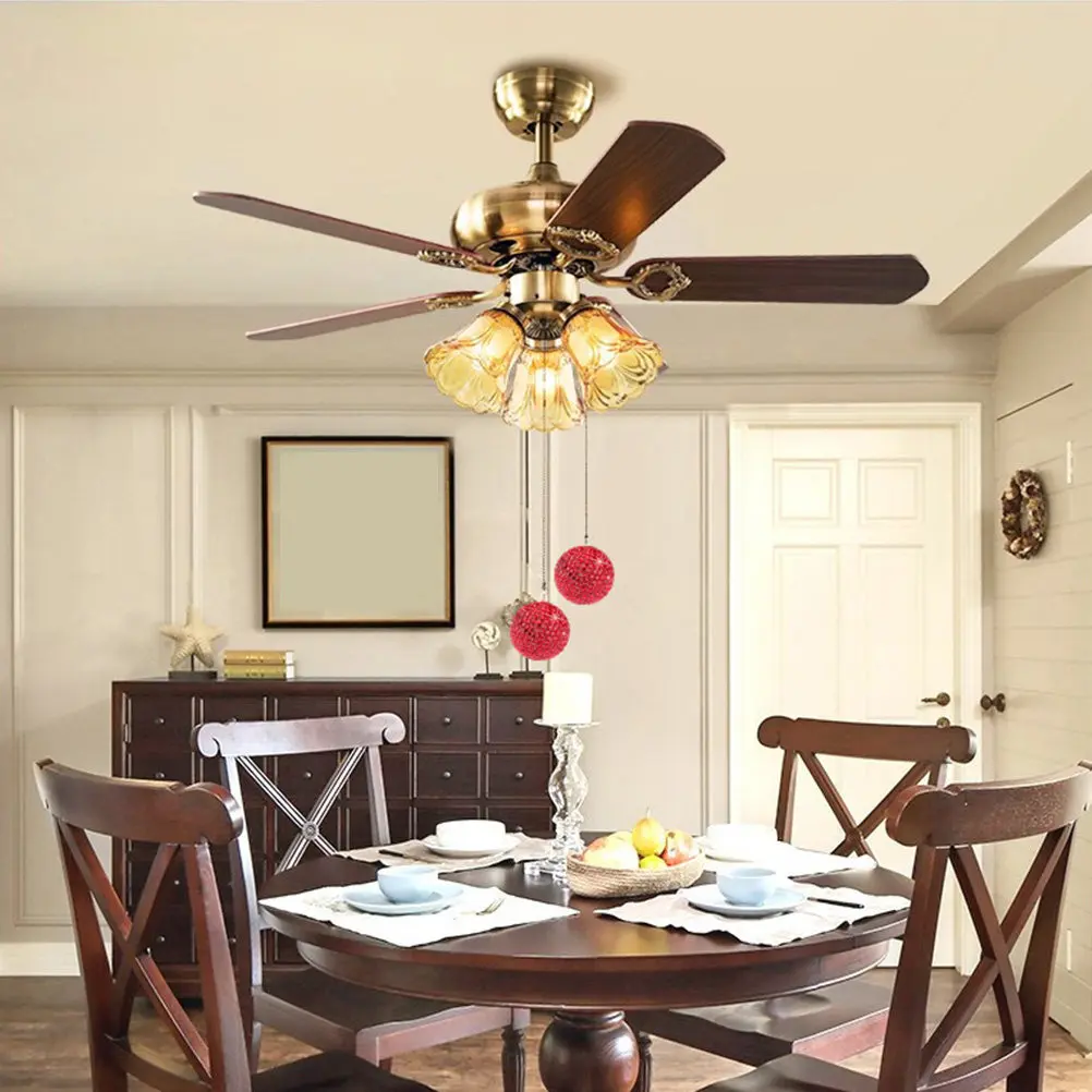 1Set Ceiling Fan Pull Chain Stainless Steel Rhinestone Beaded Ball Switch for Lamp Chandelier Light Fixture Replacement Easy
