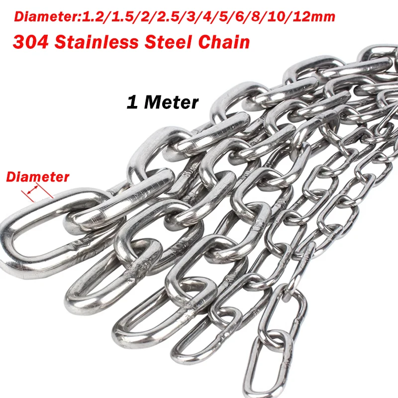 304 Stainless Steel Chain Seamless 1 Meter 1.2-12mm Diameter For Outdoor Clothes Drying Chandeliers And Guardrail Security Locks