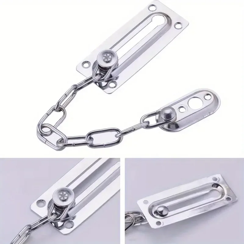 1pc Security Door Chain Home Office Lock Guard Latch Stainless Steel Silver Sliding Fastener For Home Door Lock Hardware