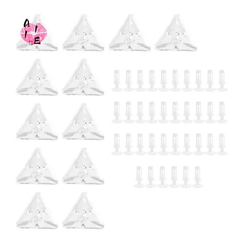 A11E-12Pcs Acrylic Corner Brackets With Semitransparent Screws Clear 3-Hole Right Angle Joint Brace Brackets
