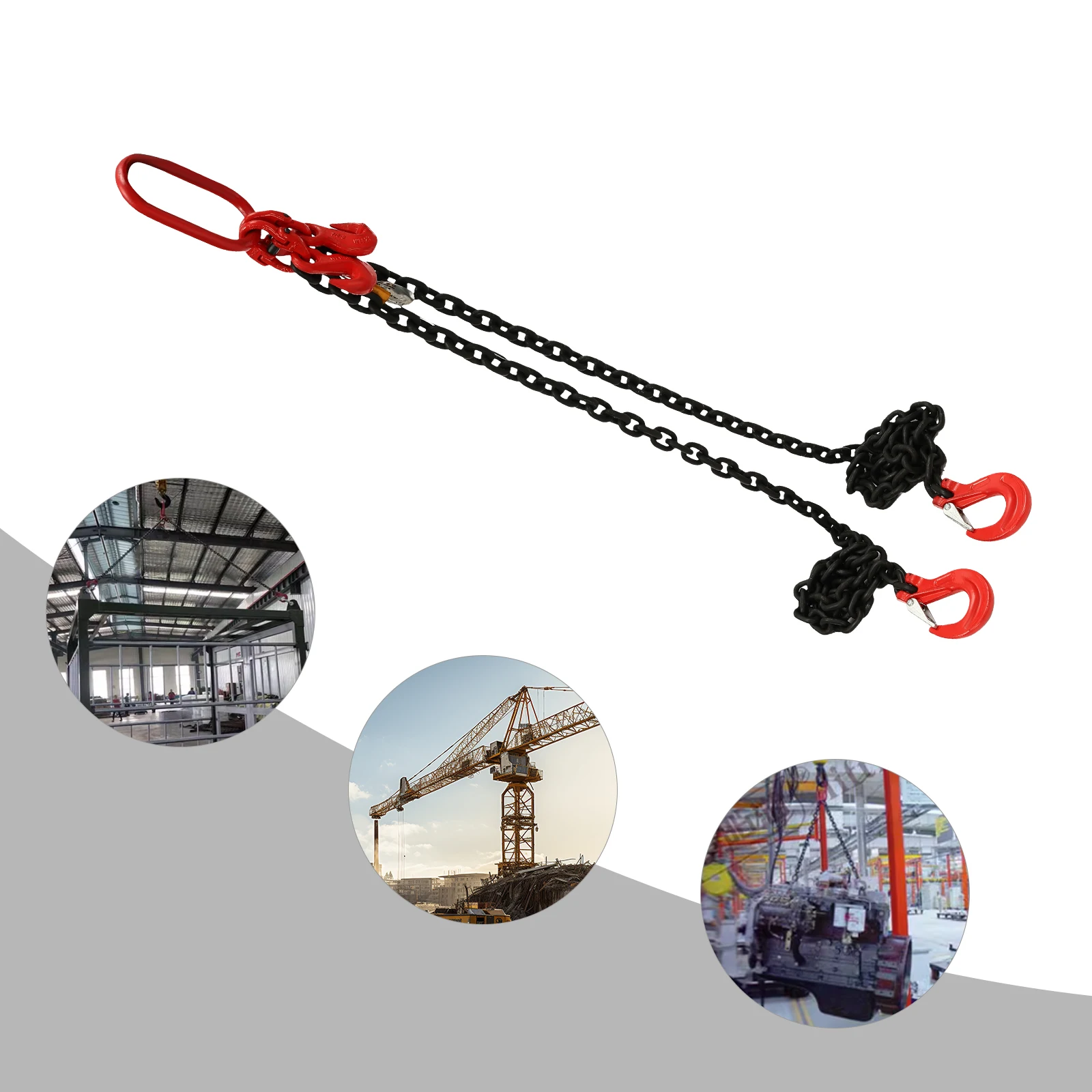 2T Chain Sling 2x2m Duty Lifting Chains Lifting Hoist Hook for Crane Machinery Warehouse Construction Lifting Tool Alloy Steel