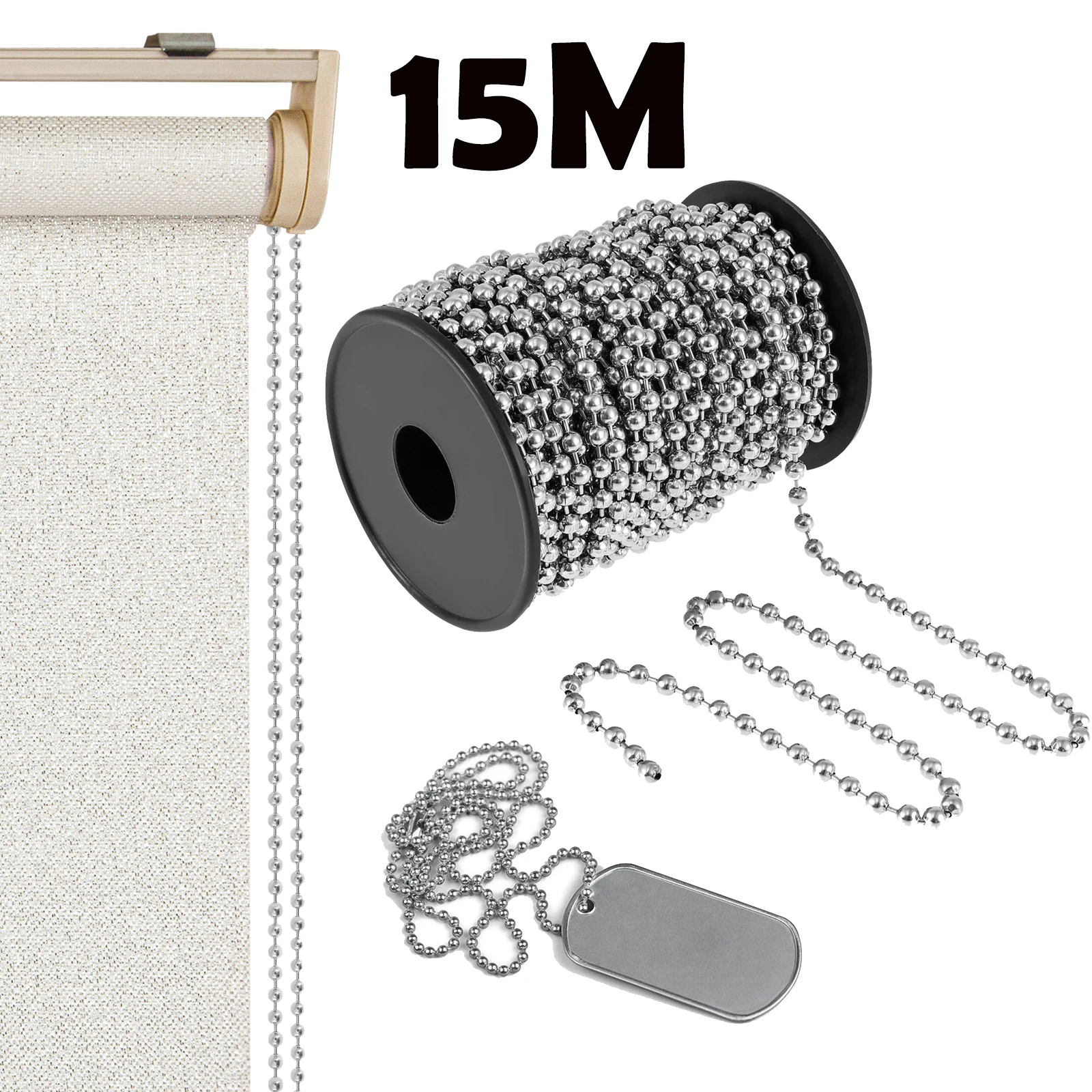 15M Blind Chain Practical Ball Bead Chain Stainless Steel Dog Tag Chain with Spool for Curtain Jewelry DIY Craft Indoor and
