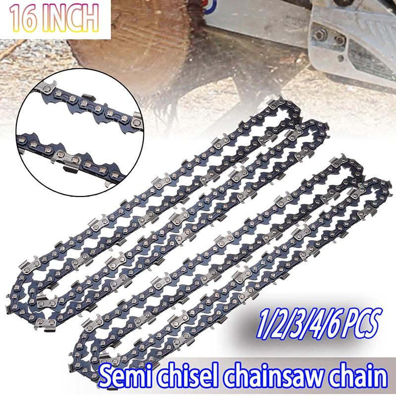 1/2/3/4 /6pcs 16 inch 56DL Mini Semi Chisel Chainsaw Chain Wood Cutting Parts 3/8" LP 0.050" Gauge 28 Cutters For Cutting Lumber