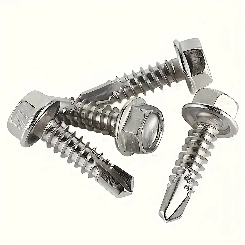100Pcs 410 stainless steel hexagonal washer head self-drilling screw M4.2 stainless steel self-tapping screw