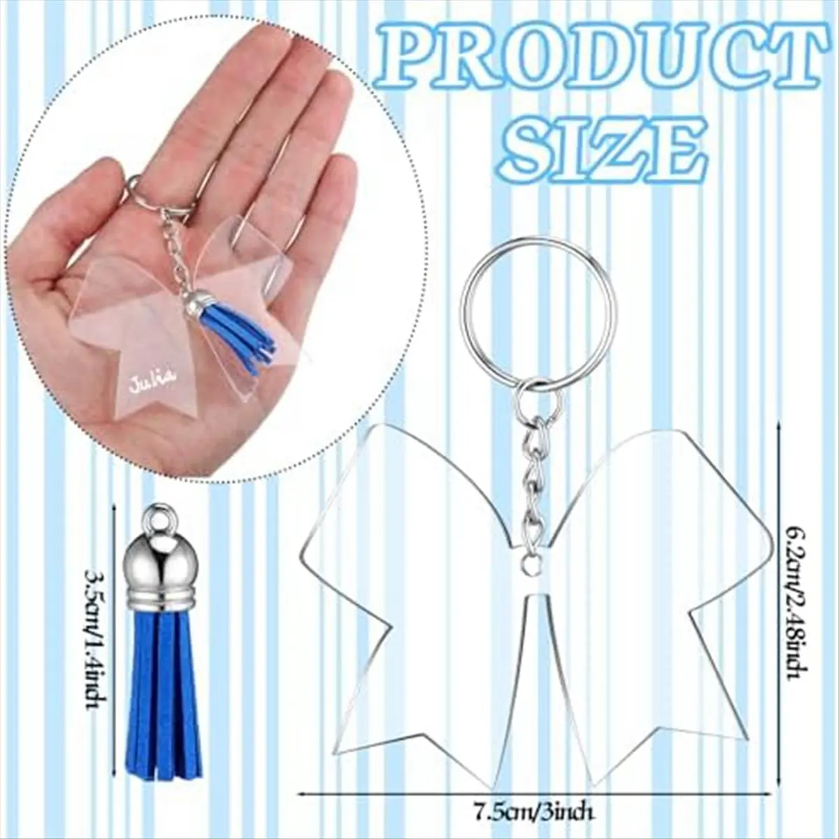 *ABAB 40Pcs Bow Keychains Acrylic Bow Keychains with Tassels for DIY Keychains Handmade Projects Cheer Accessories