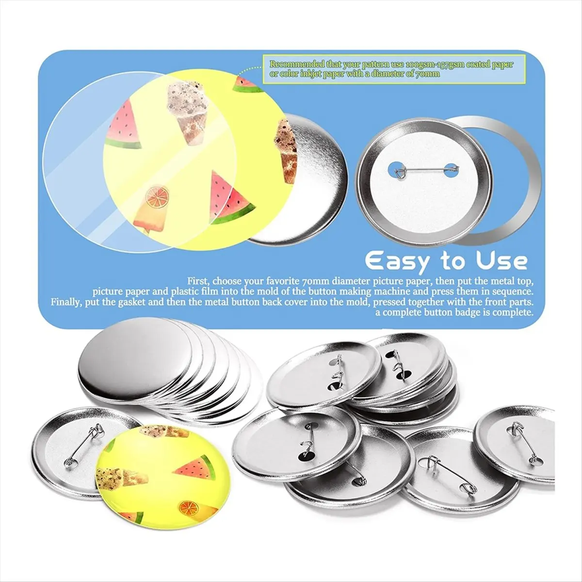 *ABAB 80 Sets 58mm/2.25Inch Metal Button Parts Supplies for Button Machine Round Pin Maker, Badge Blank Button Pins Bulk