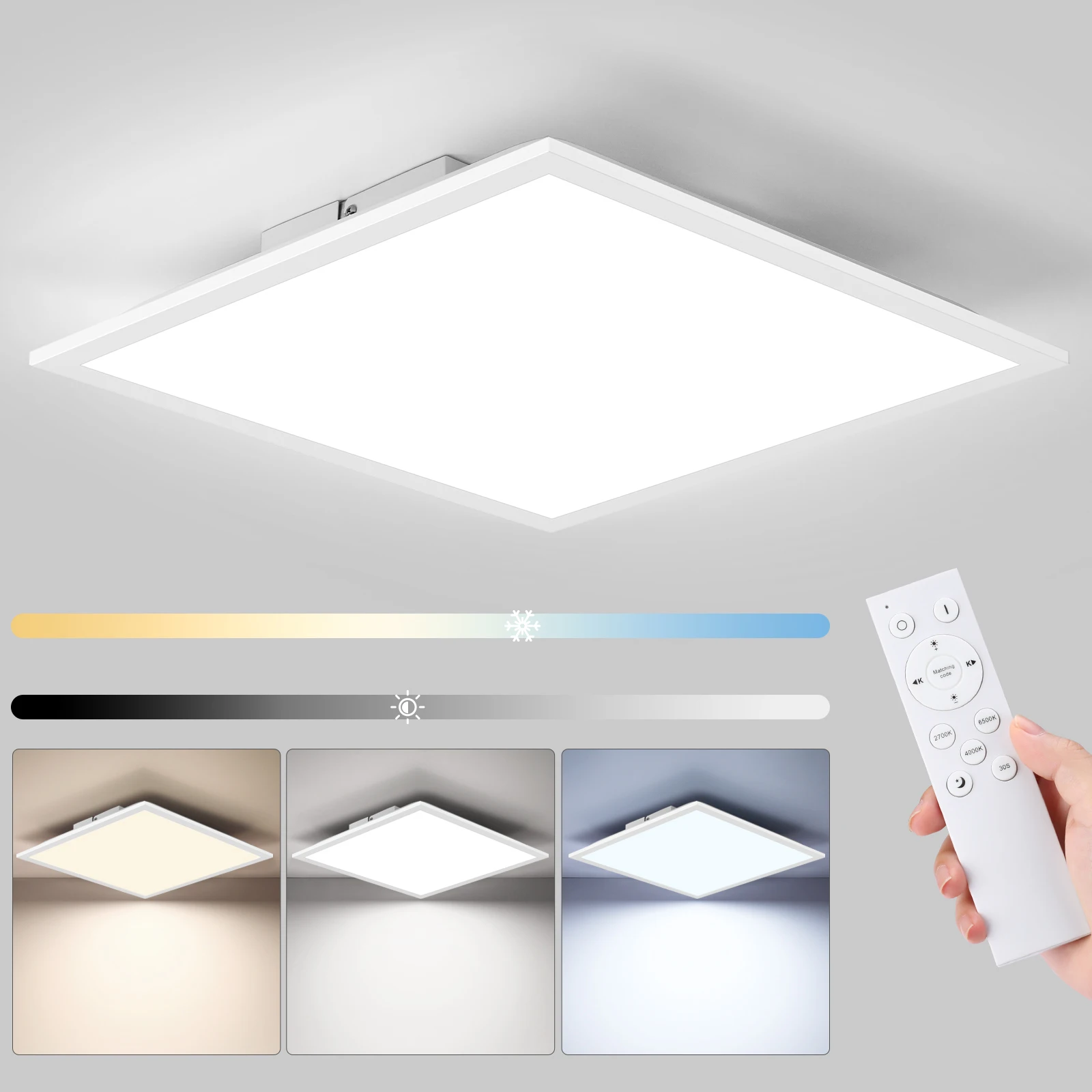 LED Ceiling Light Panel, 40x40 cm Flat Dimmable Ceiling Lamp with Remote Control, 24W Ceiling Panel Light with Memory Function, 2700K-6500K LED Light Panel for Living Room, Hallway, Bedroom
