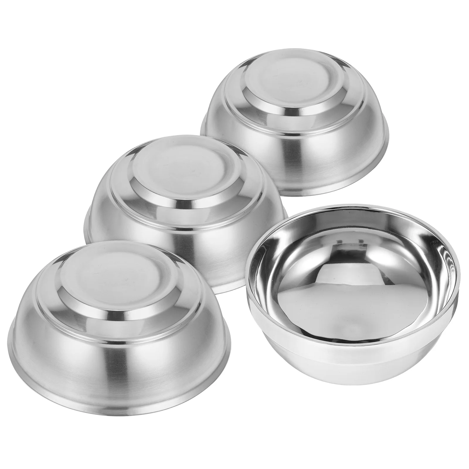 4pcs 13Cm Stainless Steel Anti-Hot Insulated Bowls Flat Base Child-Friendly Soup Rice Bowl Vacuum Double-Walled Metal Bowls For