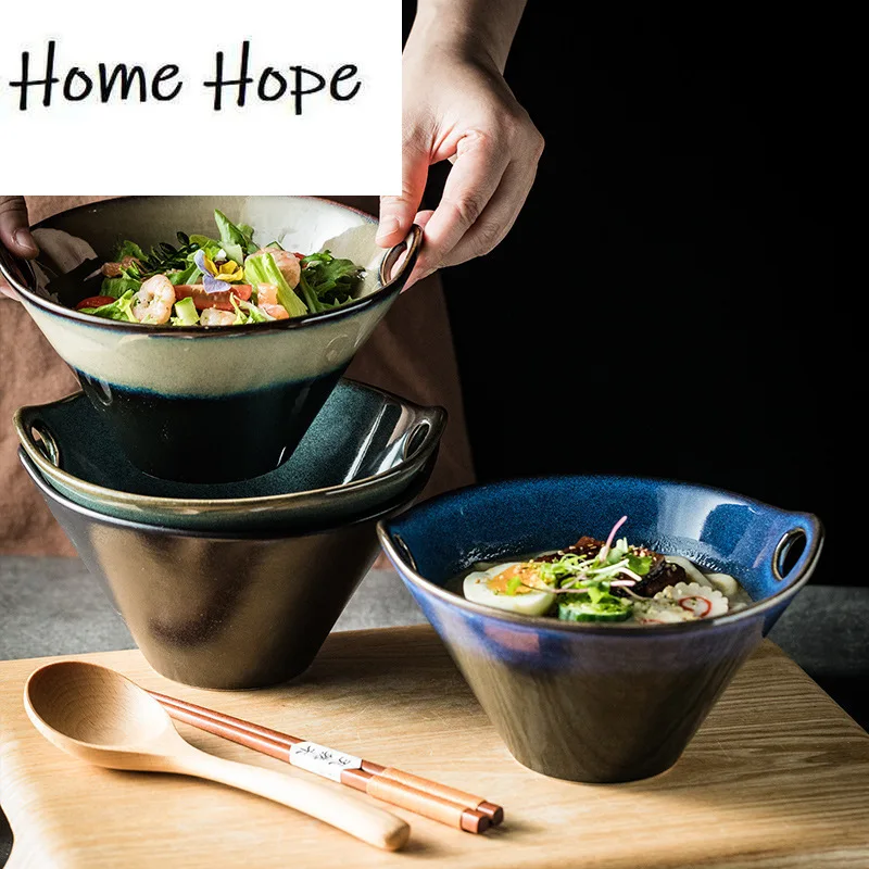 With Holes Instant Noodle Bowl Household Ceramic Japanese Creative Soup Bowl for Dormitory Student Vegetable Salad Bowl