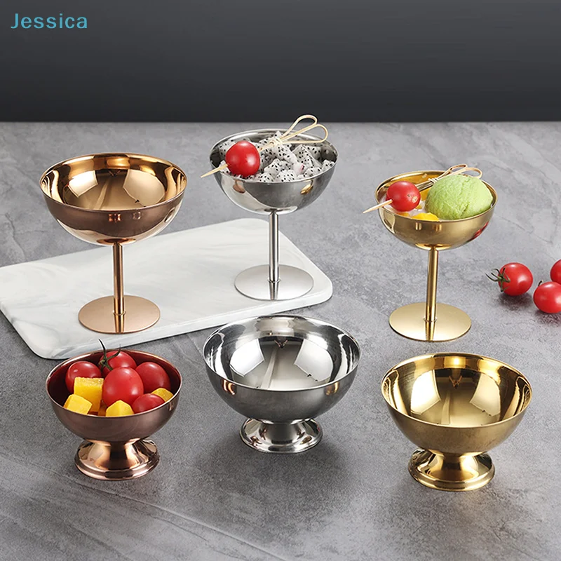 ♥Multi-Color Metal Dessert Bowl - Stemmed & Footed Bowls for Ice Cream, Fruits & Party Serving (Gold/Rose Gold/Silver)