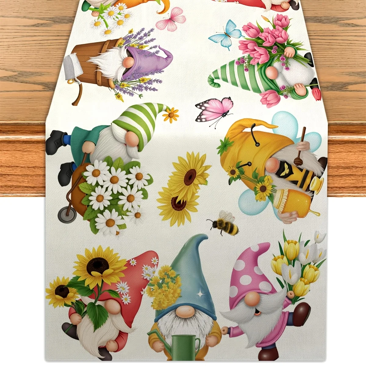 1 Piece Easter Butterfly Table Runner, Summer Bird and Flower Gnome Decoration for Home Party Spring Decorations, Suitable for Dinner Parties, Holiday Parties, Family Gatherings