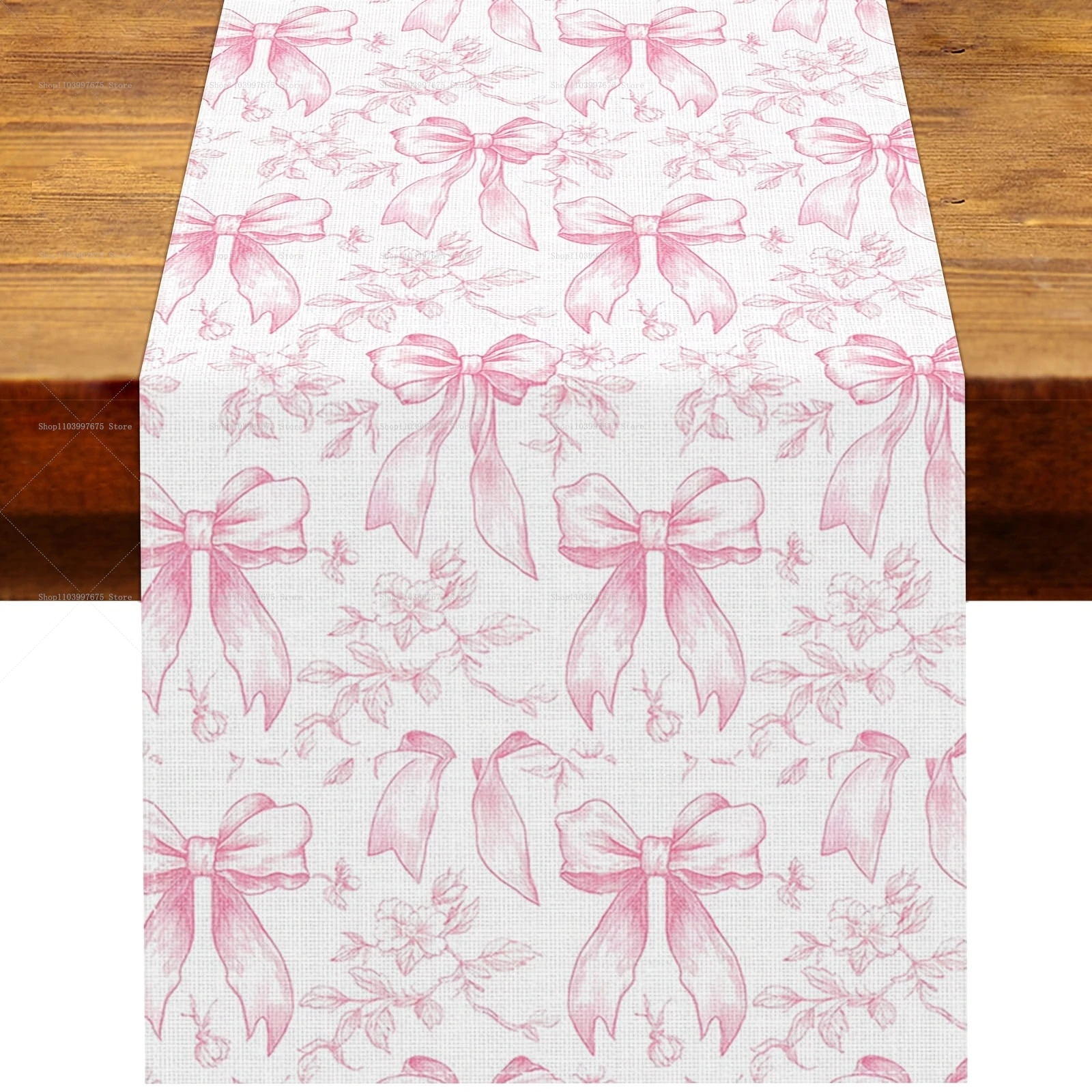 1pc Valentine's Day Pink Bow Table Runner Bridal Shower Girls' Birthday Party Table Decor Suitable for Weddings Home Kitchen