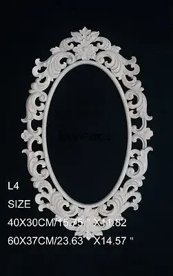 48x30cm Wood Carved Round Onlay Applique Unpainted Frame Door Decal Working carpenter Mirror Decoration