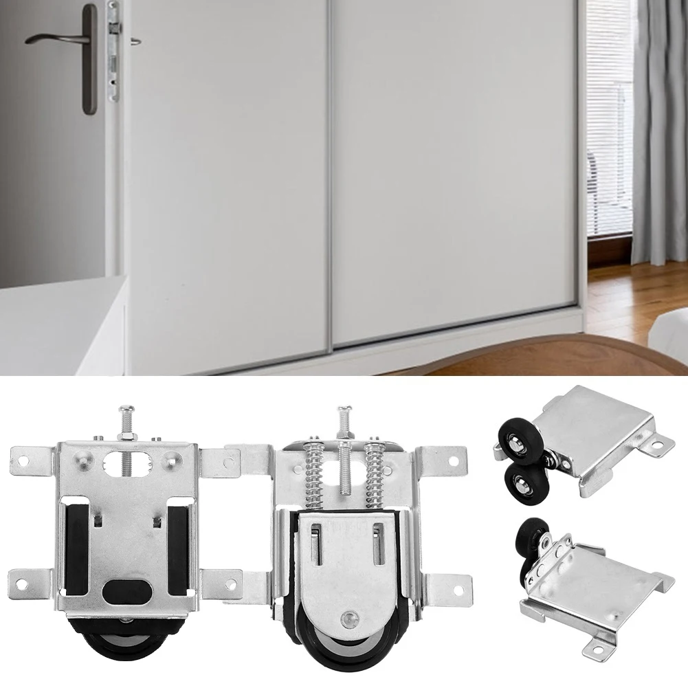 2Pair Iron Alloy Sliding Door Caster Adjustable Sliding Cabinets Door Replacement Roller Pulley For Furniture Closets Wardrobe