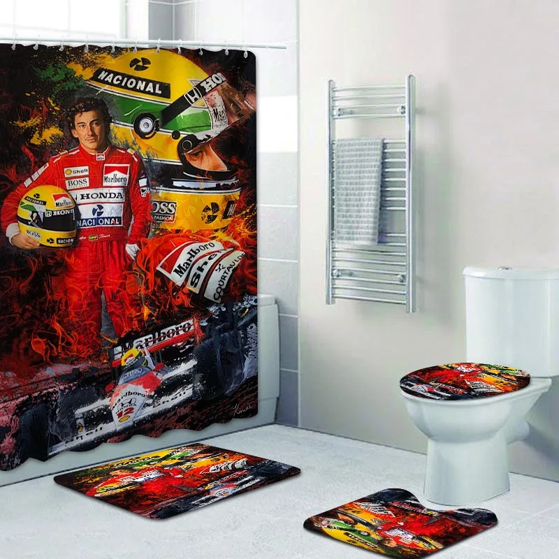 Pop Art Ayrton Senna Poster Shower Curtains Bathroom Curtain Set for Bathtub Home Decor Racing Car Bath Curtain Toilet Mats Rugs