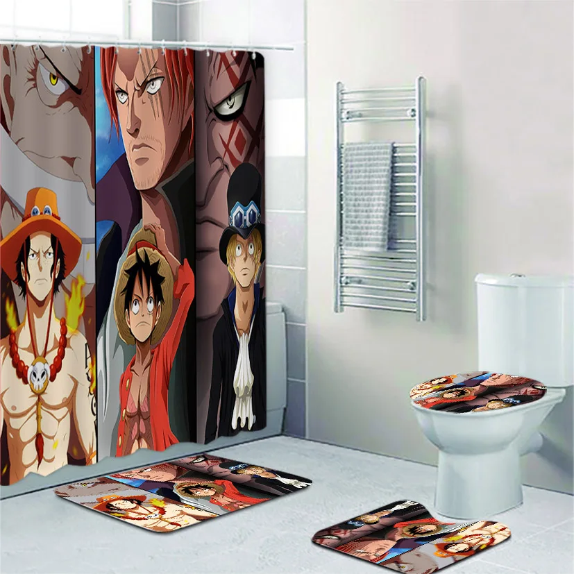 New Anime One Piece Three Brothers Collage Bathroom Curtains Set Chopper Luffy Shower Curtain for Boys Toilet Accessories Decor