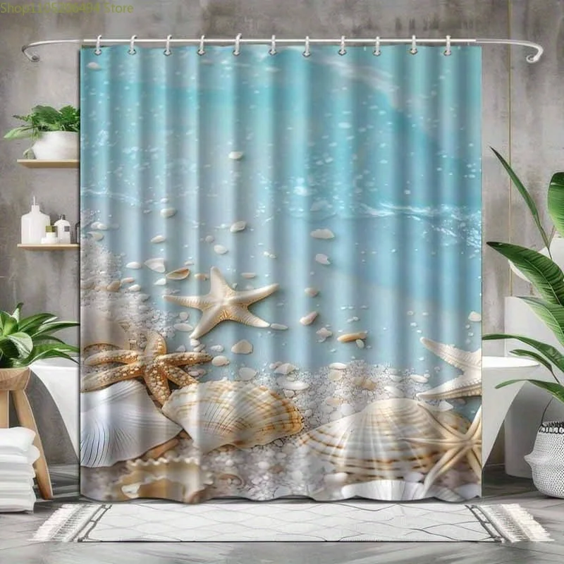 3d Beach Scenery Shower Curtains Sea Ocean Mediterranean Bathroom Curtain Waterproof Cloth Decoration 180*240cm Bath Curtain