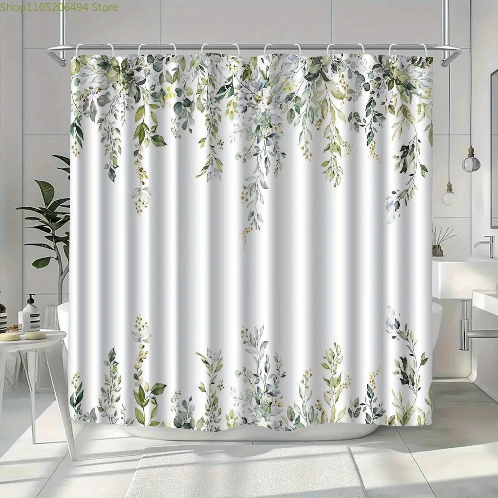 1pc Modern Botanical Vine Leaf Shower Curtain - Green Foliage Bathroom Window Panel Divider, Machine-Washable Fabric Bath Curt