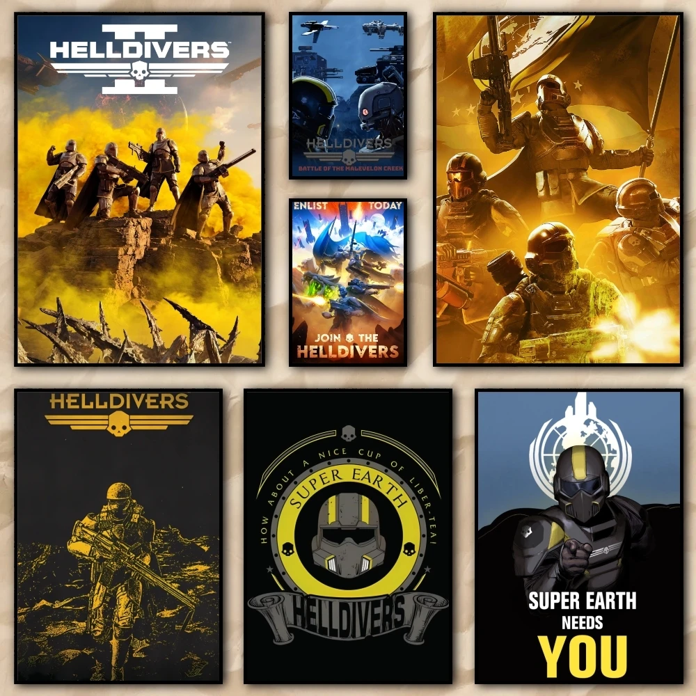 Game Helldivers II HD2 Painting Calligraphy HD Canvas Poster living room bedroom bar aesthetic decoration