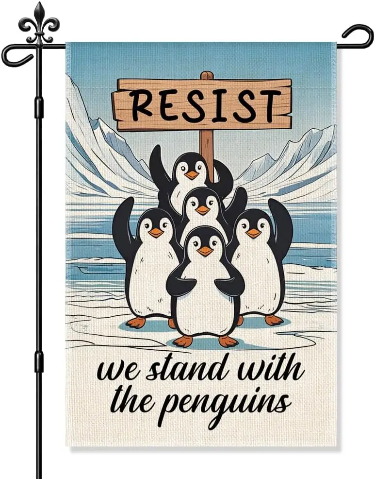 We Stand With The Penguins Garden Flag, Funny Resist Yard Flags for Outside, Democracy Liberal Tariff Sign, Penguins Against UUV