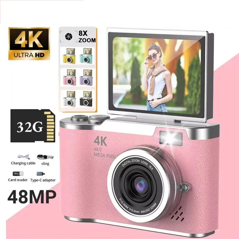 8X Digital Zoom Student Digital Camera 48MP Portable Digital Photography Camera 180° Flip Screen Selfie Camera Gifts