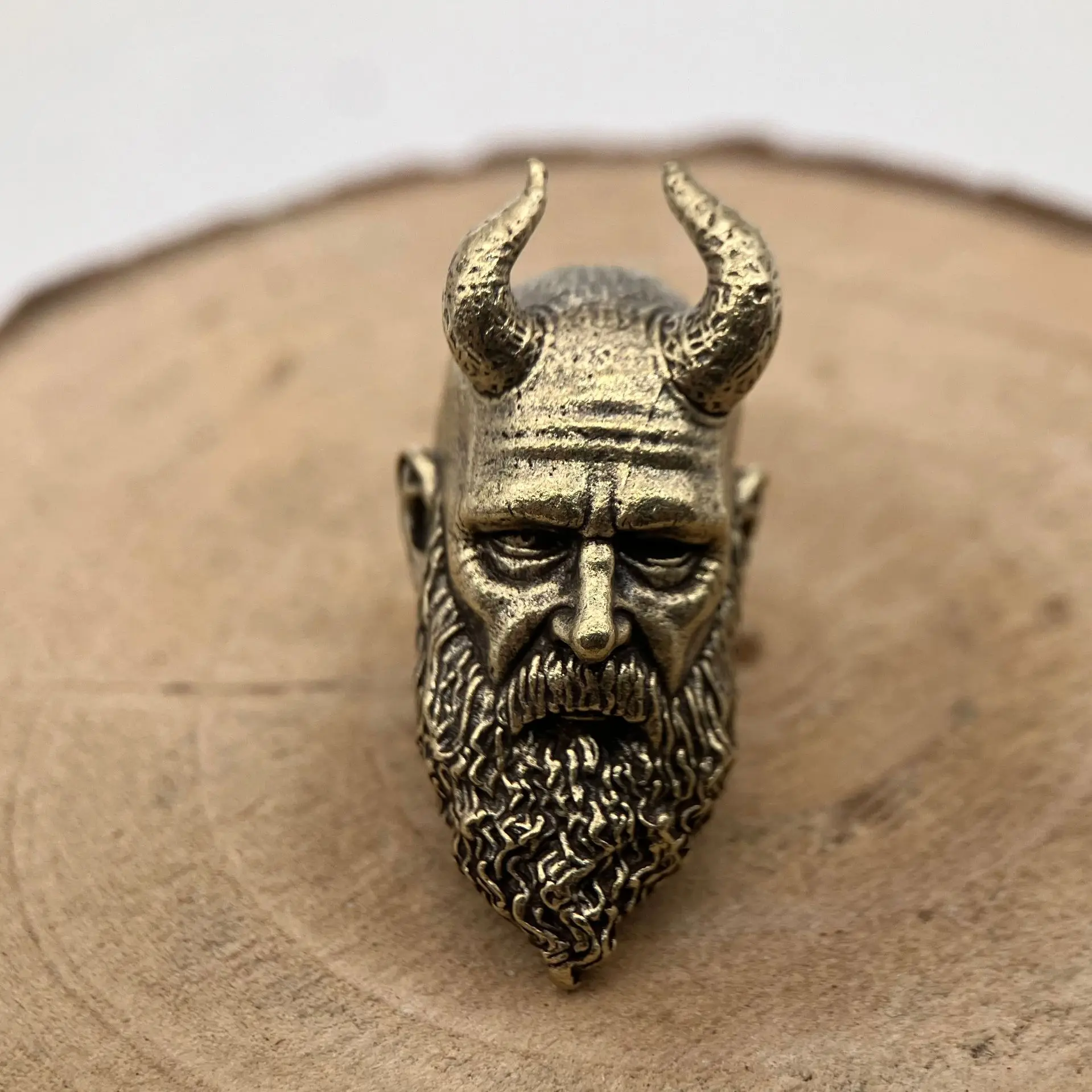 Nordic Warrior Head Sculpture Brass Knife Beads EDC DIY Paracord Woven Bracelets Lanyard Pendants Accessories Outdoor Hangings