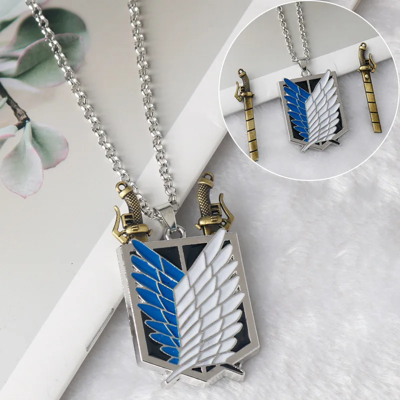Attack on Titan Necklace Shingeki No Kyojin Wings of Freedom Survey Sword Punk Keychain for Women Men Cospaly Bracelets Earrings
