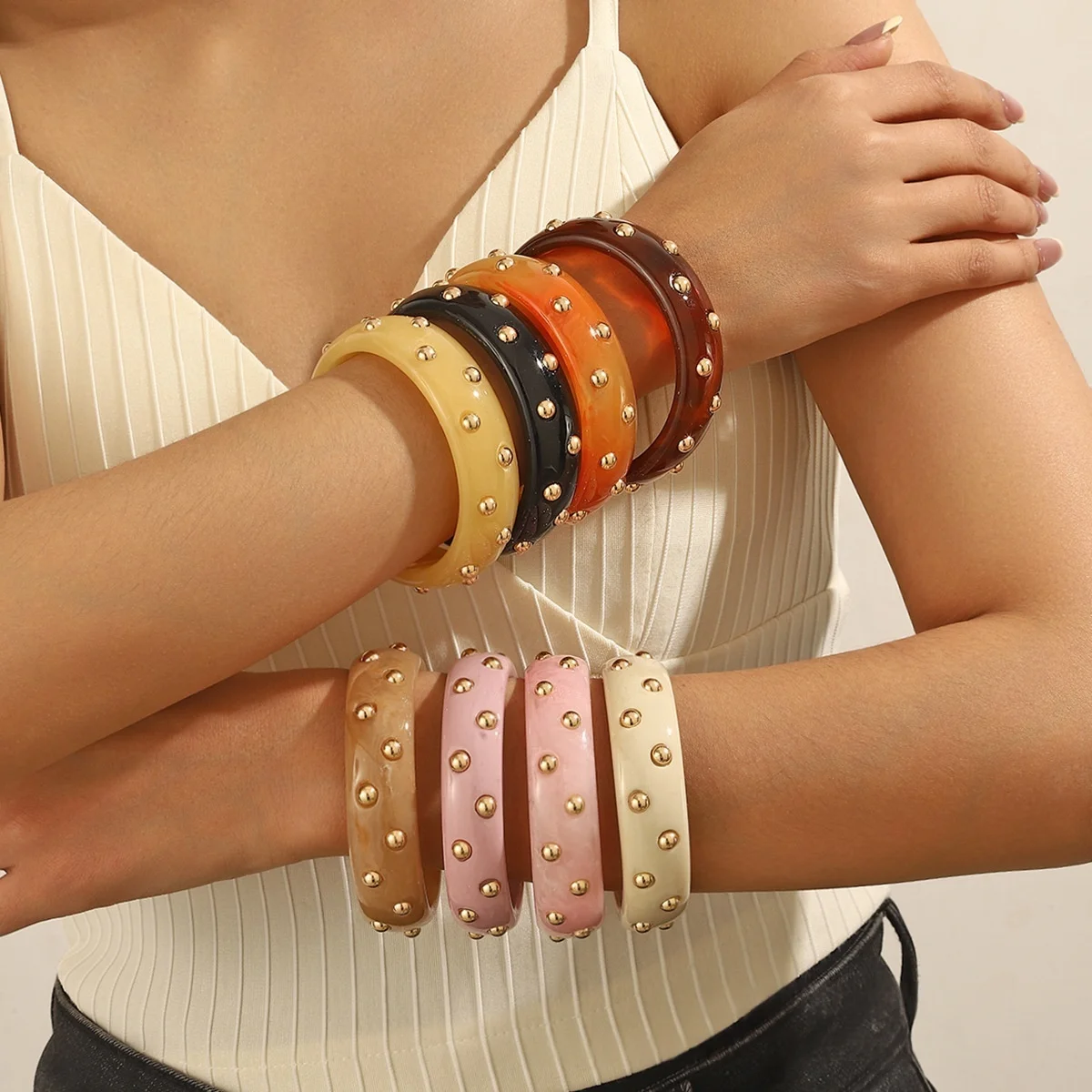 KMVEXO Vintage Resin Inlaid Beads Geometric Chunky Bangle for Women Acrylic Stackable Wide Bracelets Jewelry Accessories
