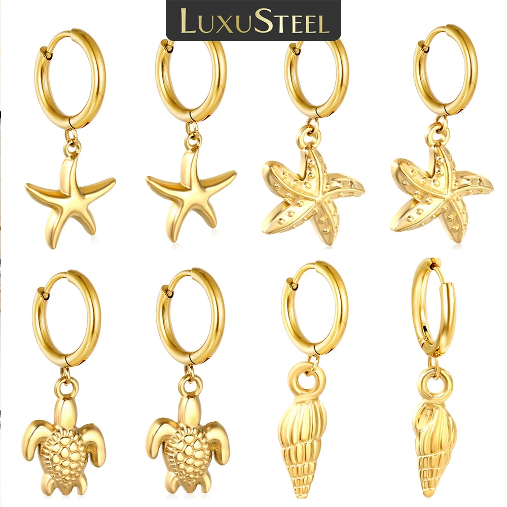 LUXUSTEEL Sea Star Conch Drop Earring for Women Girl Stainless Steel Sea turtle Female Hoop Earrings Jewelry Party Gifts