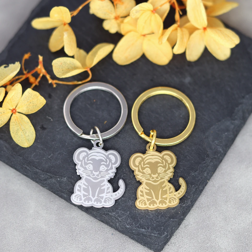 Stainless Steel Punk Animal Tiger Keychains For Women Fashion Jewelry Cartoon Key Ring Birthday Gift