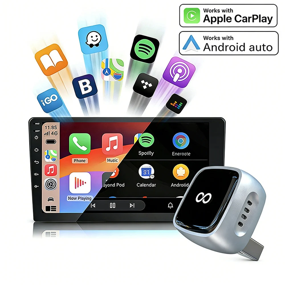 2 in 1 Wireless CarPlay Android Auto Adapter Smart USB Dongle Auto Connect Plug & Play for iPhone and Android Factory Wired Cars