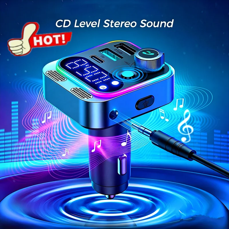 HOT New 4 Port USB Car Fast Charging Adapter Bluetooth 5.3 FM TransmitterCharger Type C PD 250W For Huawei OPPO Oneplus
