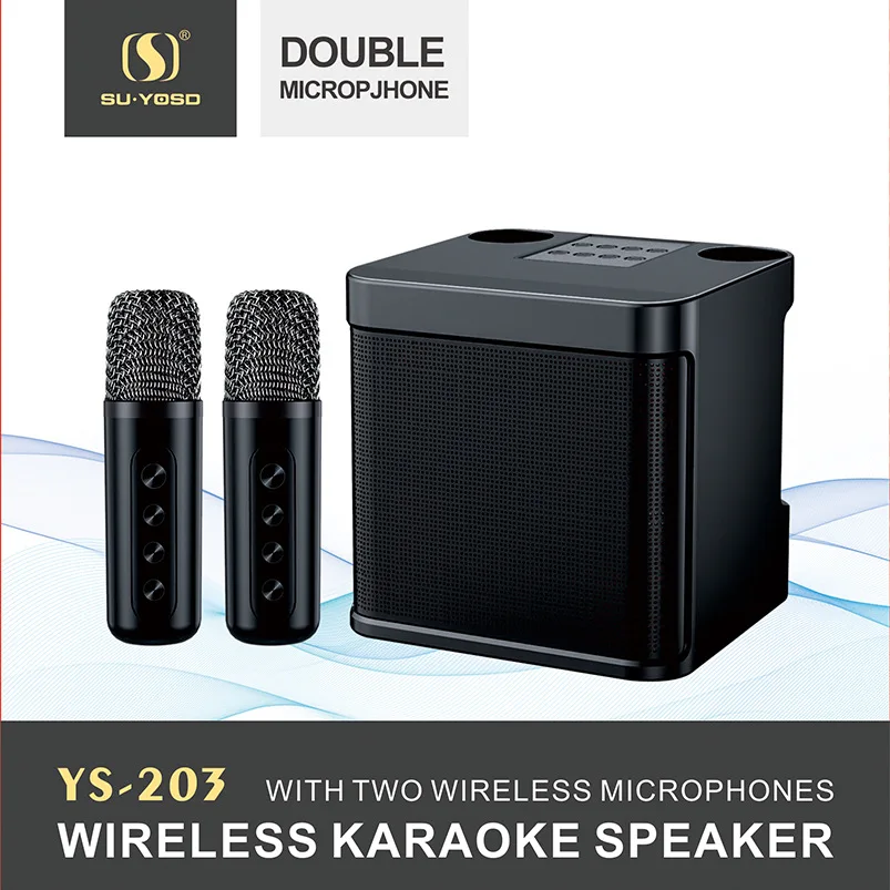 YS-203 Powerful Wireless Portable Dual Microphone Bluetooth Sound Outdoor Family KTV Set Subwoofer Audio with 2 Microphone