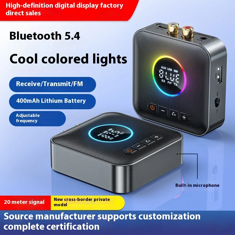 Bluetooth Adapter RGB Colorful Light Bluetooth 5.4 Audio Receiver Transmitter FM USB AUX Stereo HIFI Music Wireless Adapter