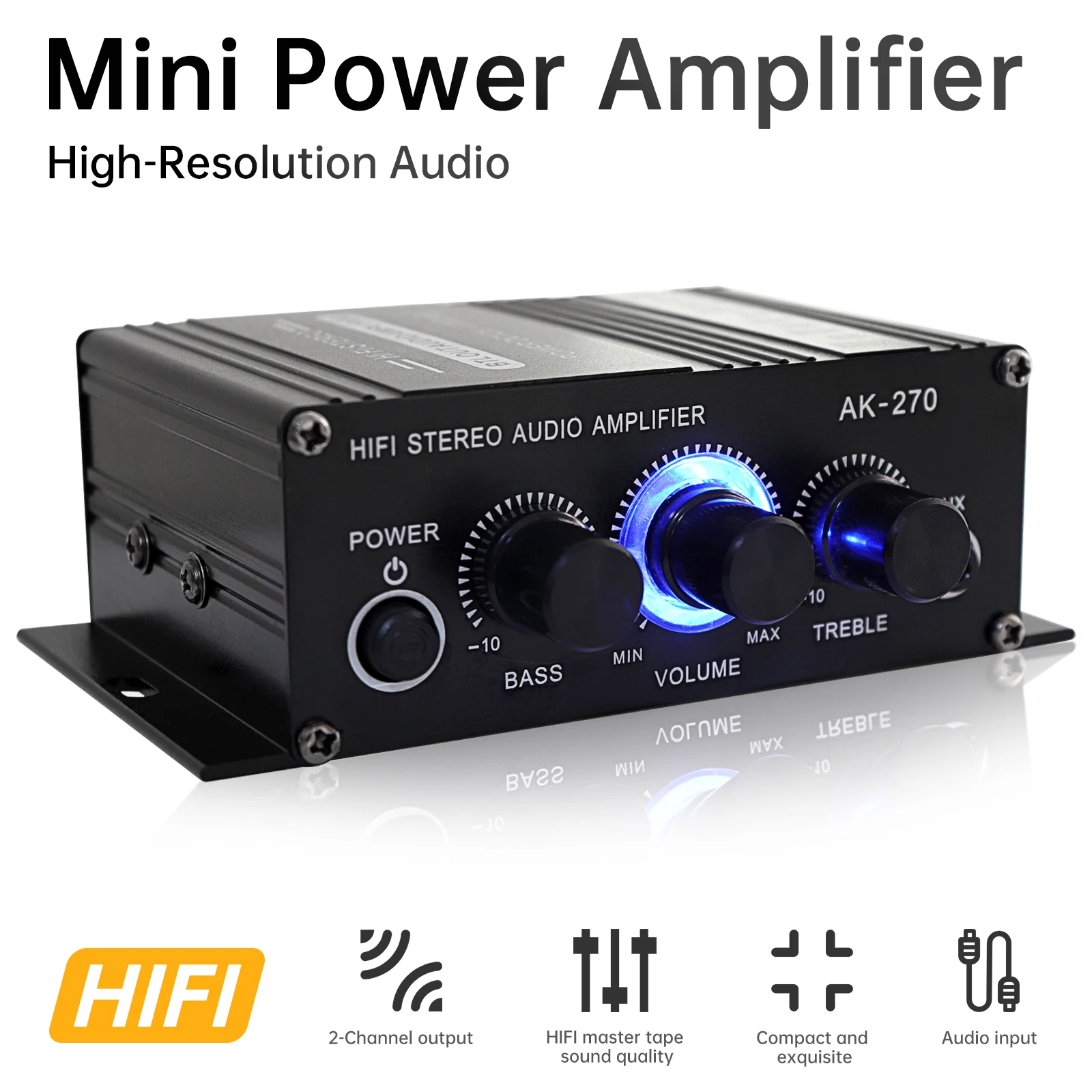 AK270 2 Channel Class D Digital Audio Power Amplifier HiFi Stereo Car Sound Power Amp with USB/SD AUX Input, Power Adapter
