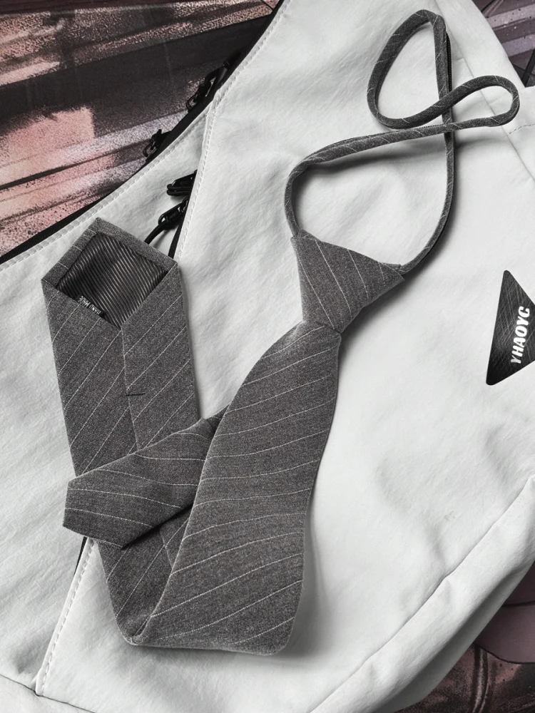 High Quali k ey Zipper Tie Women's No Tie Simple Stripes Versatile Faionable Korean Sle College Wind