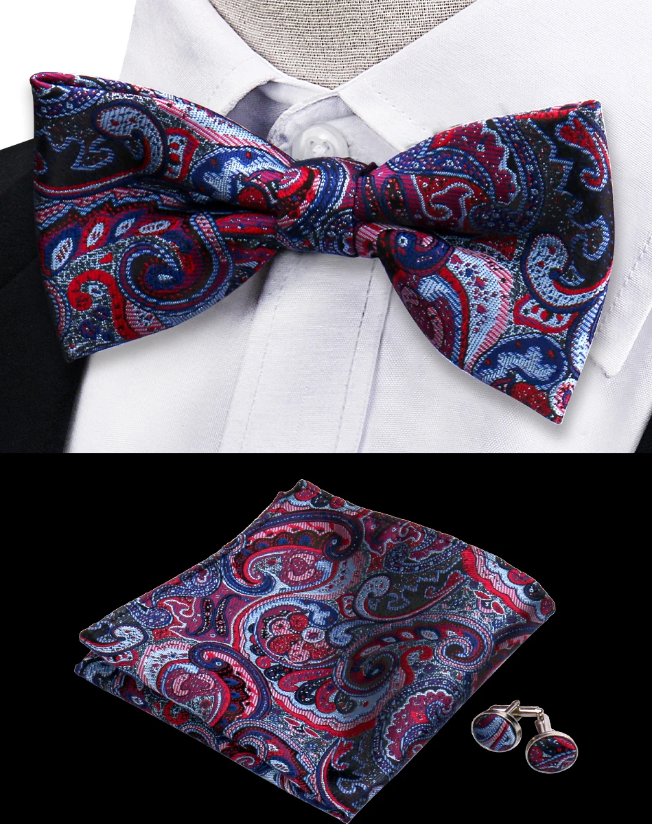 3PCS Men's Bowtie Set With Handkerchief Cufflinks Business Wedding Paisley Pocket Square Butterfly Bow Tie For Shirt Accessory