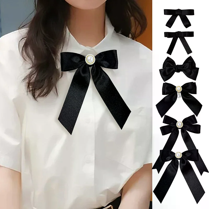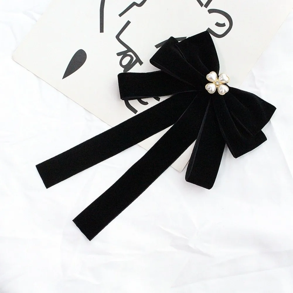 Sparkling Velvet Black Ribbon Pin Rhinestones Pearl Funerals Memorial Pin Pin Multi-layer Black Bow Necktie Girl