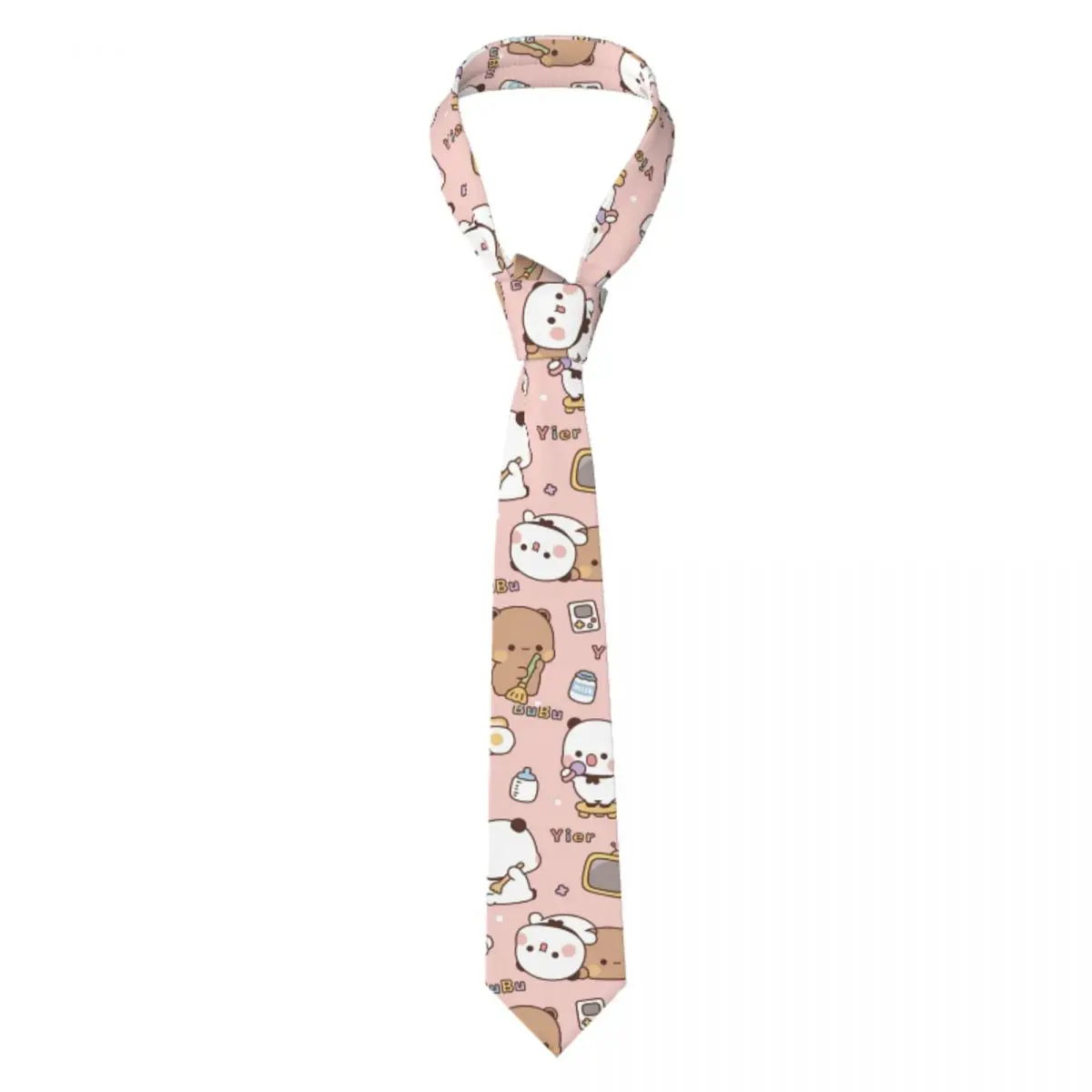 Custom Formal Bubu Dudu Panda And Brownie Bear Couple Neck Ties Men's Silk Necktie for Party Cravat