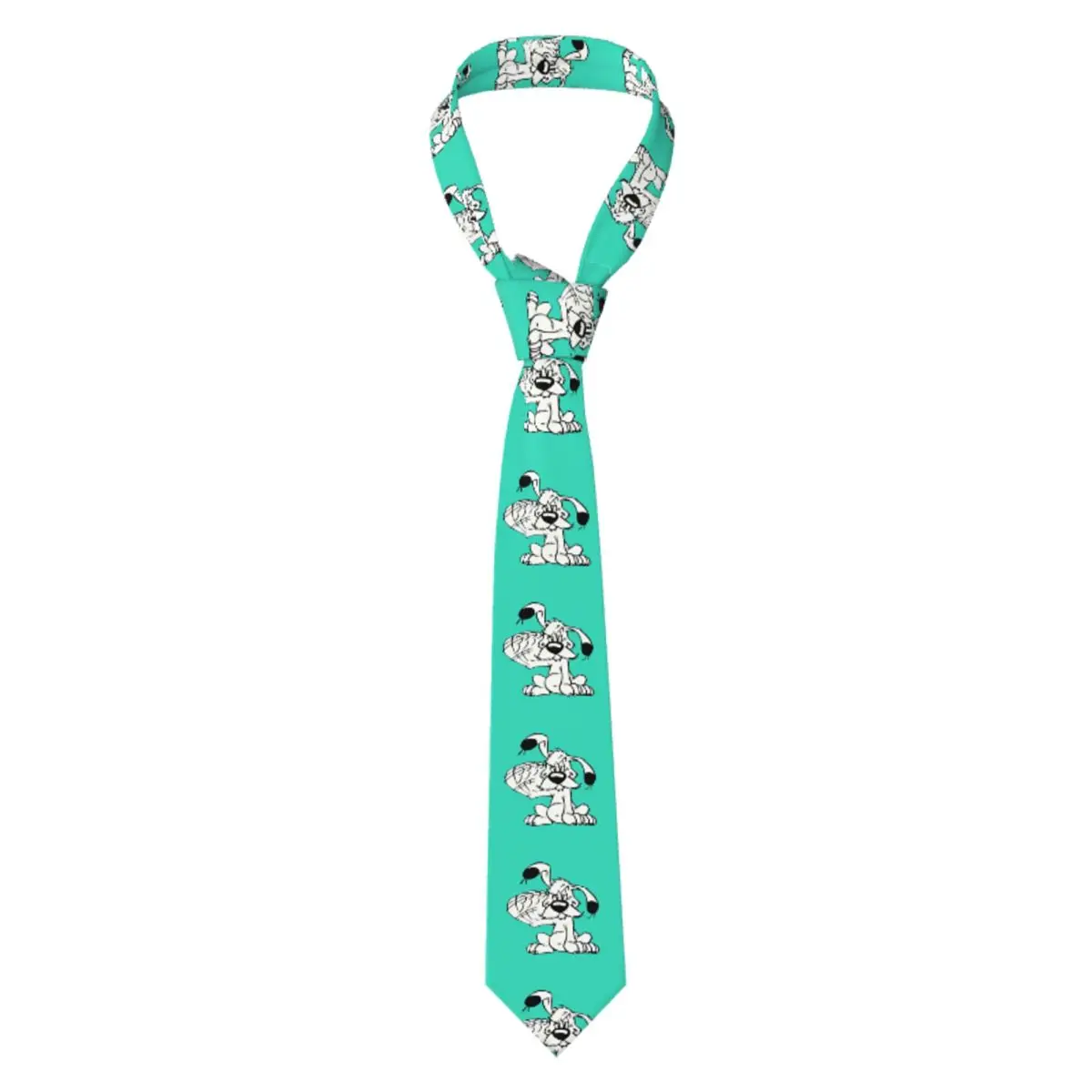 Custom Manga Asterix And Obelix Dogmatix Tie for Men Formal Cute Dog Silk Business Neckties