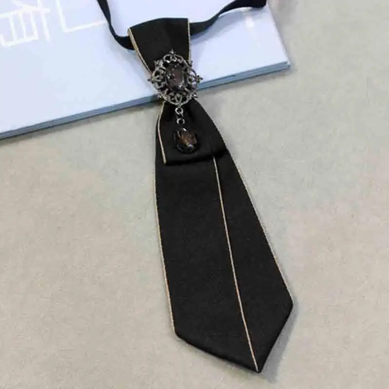 Elegant Lace Ribbon Bowtie Black College Style Collar Rhinestones Jewelry Student Shirt Korean Fabric Bow Brooches